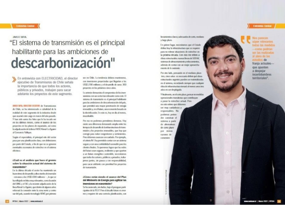 En entrevista con Revista Electricidad, nuestro director ejecutivo, Javier Tapia, abordó los principales desafíos del sector de transmisión para los próximos años.
