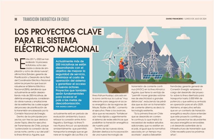 En Diario Financiero: Los proyectos clave para el sistema eléctrico nacional
