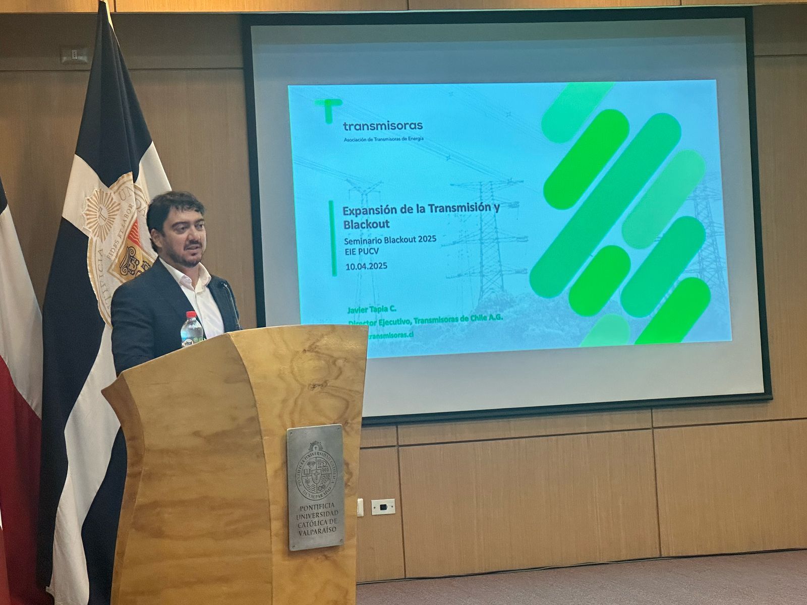 Javier Tapia, Director Ejecutivo de Transmisoras de Chile, fue uno de los expositores destacados en el Seminario Blackout 2025, organizado por la Escuela de Ingeniería Eléctrica de la Pontificia Universidad Católica de Valparaíso (PUCV). En su presentación abordó los principales desafíos del sistema eléctrico nacional, destacando las lecciones aprendidas y los rezagos que persisten en áreas clave como la planificación, el marco regulatorio y la seguridad del sistema.